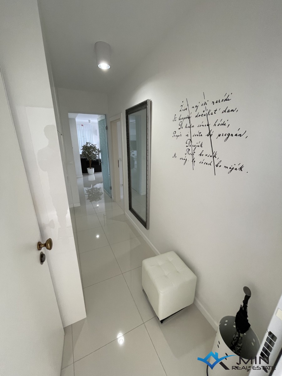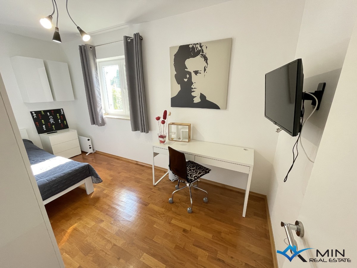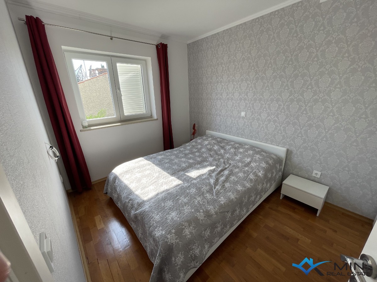 Prodaje se moderno i ukusno uređeni stan smješten na izuzetno atraktivnoj i traženoj lokaciji u Novigradu, u mirnom naselju Karpinjan, svega 200 metara od mora i prekrasno uređene plaže te na ugodnih 650 metara od samog centra grada. Ova lokacija pruža savršen spoj mira, blizine prirode i brzog pristupa svim sadržajima potrebnima za ugodan život ili odmor. Stan se nalazi na 1. katu uredne i održavane zgrade te ima ukupnu površinu od 73 m². Pametno je raspoređen i funkcionalno organiziran, a sastoji se od ulaznog hodnika, dvije komforne spavaće sobe, dvije kupaonice, kuhinje povezane s blagovaonicom te prostranog i svijetlog dnevnog boravka s izlazom na natkrivenu terasu, idealnu za opuštanje i uživanje u toplim danima. Stan je uređen s posebnom pažnjom na detalje te se prodaje potpuno namješten, što omogućuje budućem vlasniku useljenje bez dodatnih ulaganja. Uz stan dolazi i pripadajuće spremište površine 3 m², idealno za odlaganje stvari, kao i osigurano parkirno mjesto od 13 m², što predstavlja veliku prednost, posebno tijekom turističke sezone. Ne propustite priliku za kupnju stana na jednoj od najpoželjnijih lokacija u Novigradu!